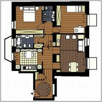 Progetto preliminare di ristrutturazione di un villino bifamiliare. Nell'immagine una soluzione del progetto preliminare. Opera non realizzata. |